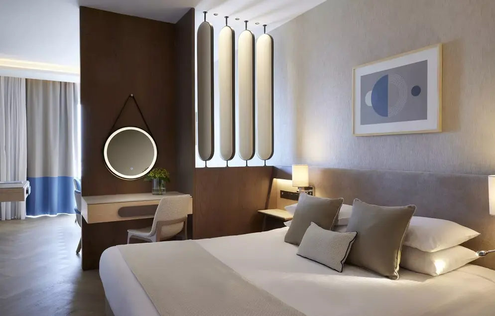 The hotel exudes a sophisticated and elegant ambiance, with its architecture and interior design reflecting a fusion of modern luxury and traditional Cypriot elements. Guests can immerse themselves in the hotel's culture by indulging in delectable Mediterranean cuisine, experiencing authentic Cypriot hospitality, and enjoying the serene atmosphere that permeates the entire property.